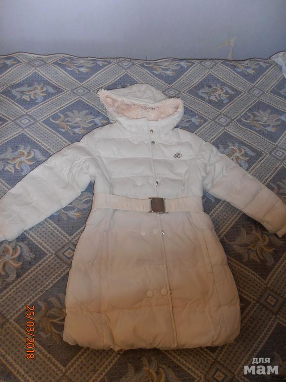 29 ) Пальто Белими - размер 116, зима, холлофайбер,до пояса теплая подкладка типа флиса,внутри есть утяжка в поясе, мех на капюшоне натуральный, длинноигловый, с перышками в цвет крапинок на пальто, очень красиво смотрится,внутри трикотажный манжет в рукавах, в идеале, 2300 руб. Очень теплое !!!!