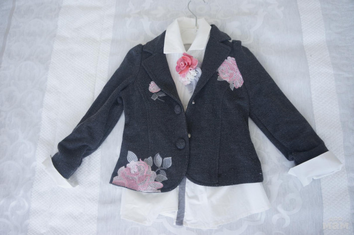 Рубашечка в идеале, на ребенке смотрится изумительно. жакет имеет небольшое кол-во катышек, не критично, но они немного есть. Жакет из трикотажа, очень мягкий и приятный.