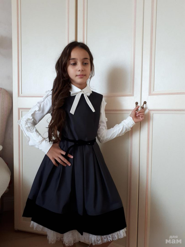 Шикарный, на фото рост девочки 138, сарафан 140, и он с запасом на год носки точно) Считаю, что размер в размер, возможно, чуть более плотной девочке можно и раньше. Нам поменяли цвет формы, поэтому срочно продаю!
