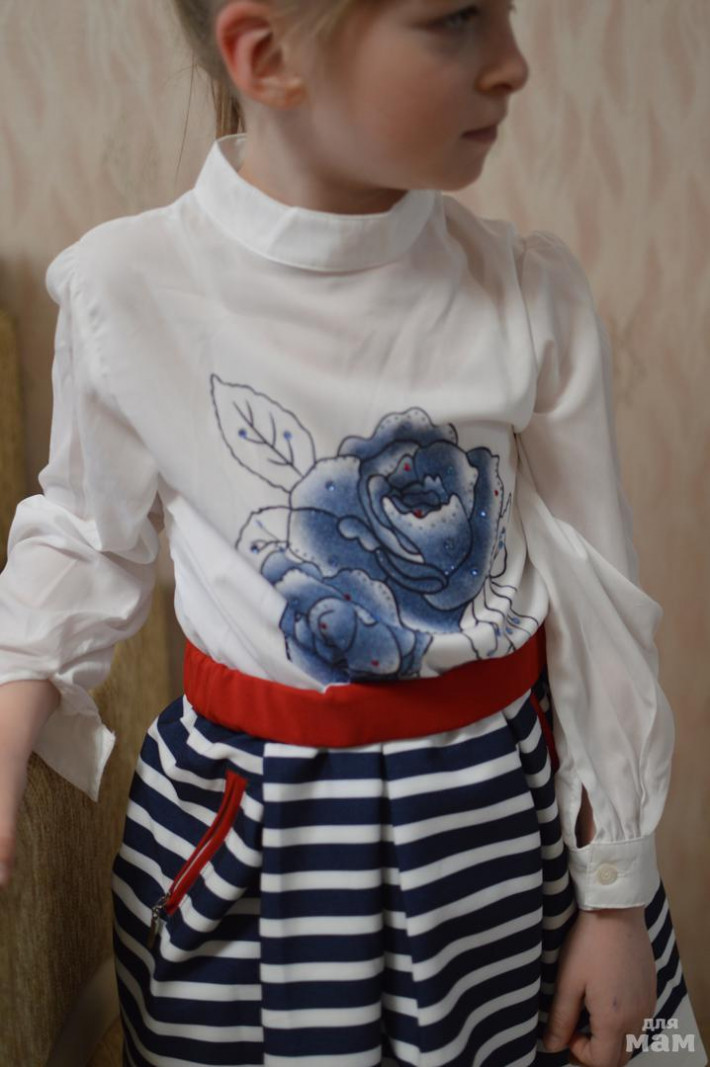 вышивка на рукавах, стразинки на блузочке.
