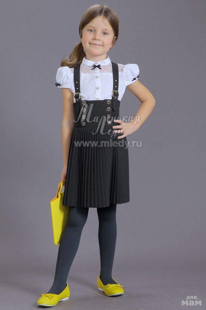 Очень качественный и долгоиграющий, отлично на ребенка любого телосложения за счет трикотажной вставки сзади, на рост 135 если лямки застегнуты на самое крайнее деление, уже сидит хорошо, с запасом на начало года, ну и дальше можно опускать лямочки, до 150 точно! Ткань плотная, гофре идеальное!