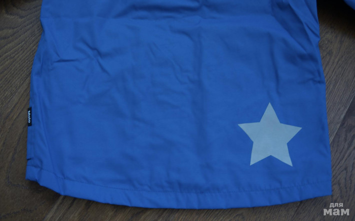 Выполнена из мембранной ткани и не продувается, вся влага, попавшая на ее поверхность останется на ней и ребенок не промокнет.