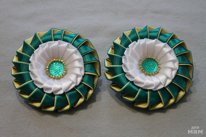 Ок, тогда тут номер 1 , номер 9, номер 6 ( делаем его с камеей цвета какао и такими же лентами, кстати, а может быть есть ленты чуть светлее, чем камея какао, и в форме , которую вы показывали по зеленой заколочке ниже)