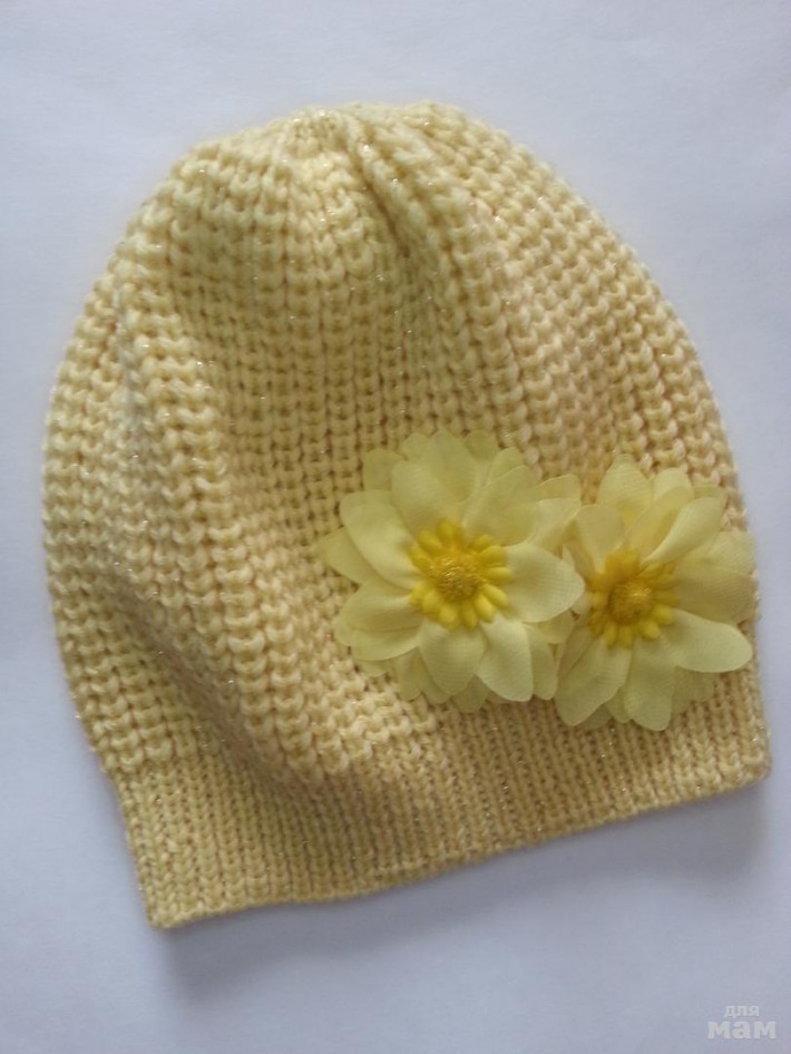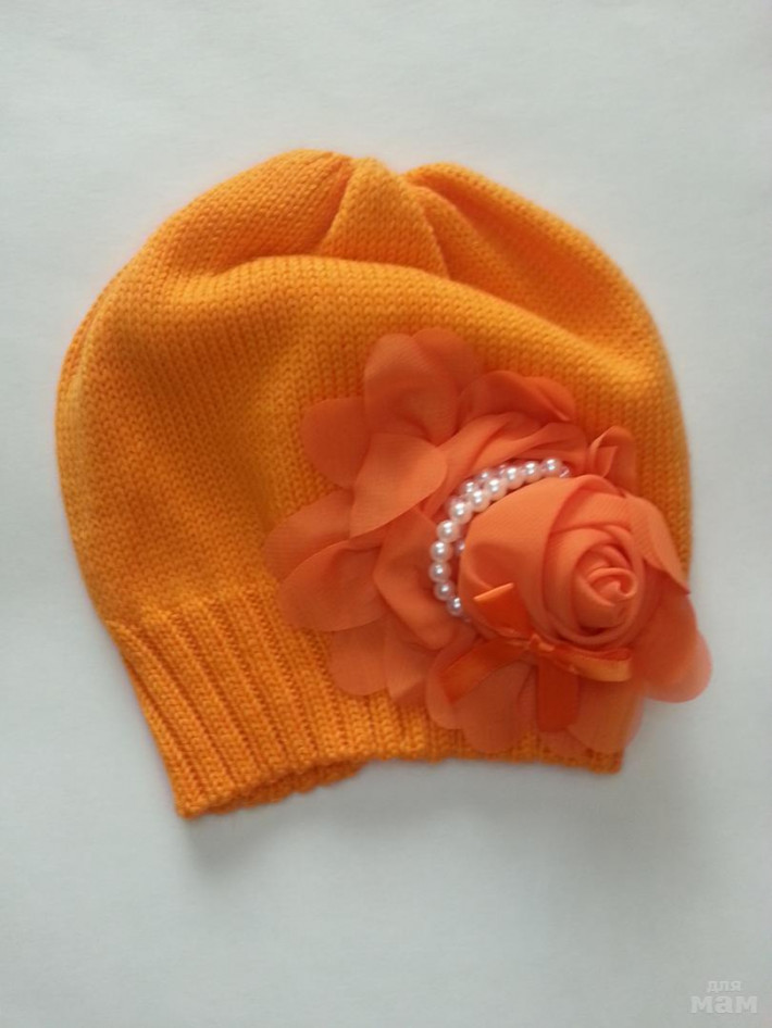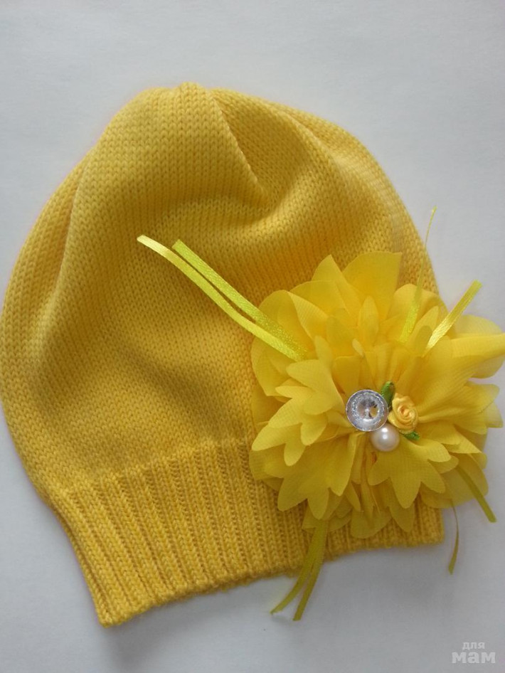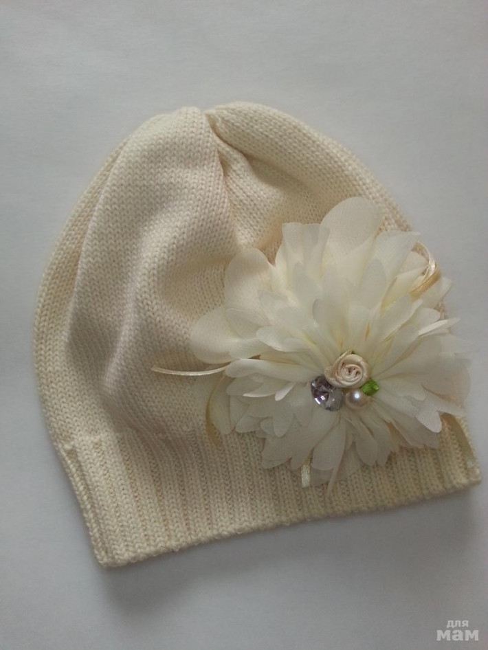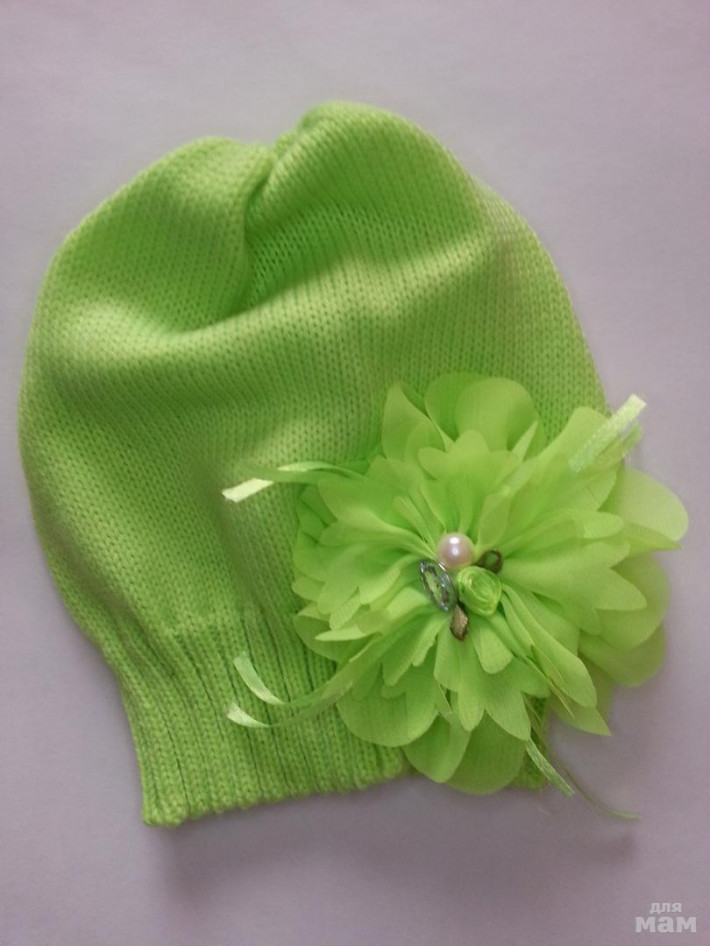 16. Шапочка из плотного хлопка с шифоновым цветком - 500 р.
