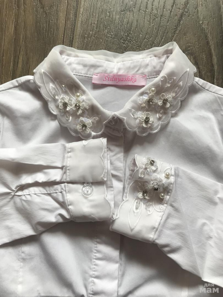 1. Блузка Stilnyashka (Стильняшка), одели один раз на 1 сентября. Состояние отличное, все камушки на месте. Размер 128 (носили с роста 122 по 128)ю Цена 1000 руб.