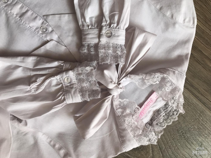 2. Блузка Stilnyashka (Стильняшка), одевали очень мало. Состояние очень хорошее, кружева все целые. Размер 128 (носили с роста 122 по 128). Цена 800 руб.