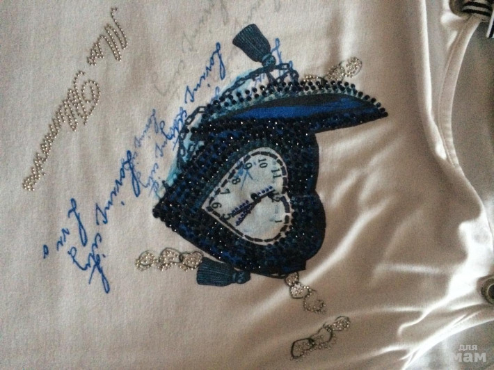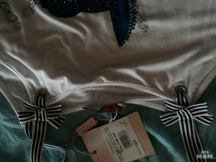 1 очень красивая майка blumarine новая , все стразы шикарно переливаются цена всего 600₽ тк есть дефект размер 14 лет указан но можно раньше ! Трикотаж очень мягкий