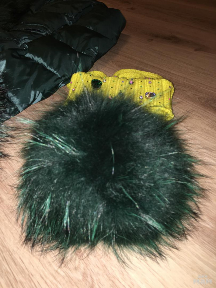 Шапка - меринос экстрфайн, помпон финский енот 22см (состояние идеальное)!!! 2500руб