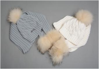 Комплект для мальчика: шапка с помпоном из натурального меха, шарф