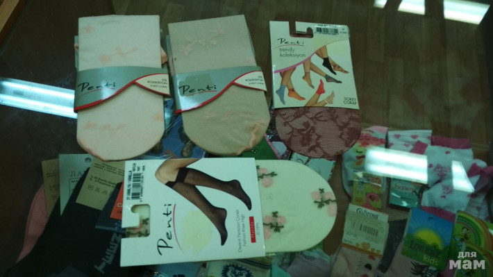 Справа Носки брусничного цвета и Гольфы белые имитация сетки. Стоят по 130 руб.