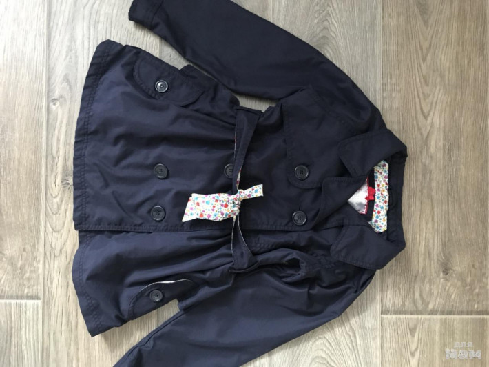 Плащ Mothercare, состояние очень хорошее! Ни каких нюансов! Дочка одевала в начале сентября в школу. Цвет темно-синий. Размер 128, но дочь носила на рост 122.