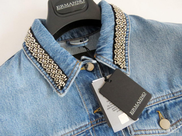Ermanno ScervinoР.42Хлопок 100%, джинса довольно плотнаяПлечи - 45 см, подмышки - 48 см, по низу - 49,5 см. Рукав - 57 см от плеча, 45 см от подмышки. Длина по середине спинки - 63 см