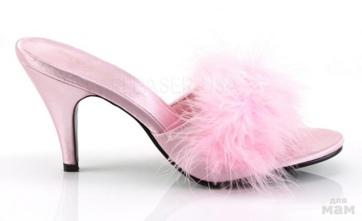 Новые домашние туфли AMOUR (Classic Marabou Slipper), нa каблуке (8см). Материал - атлас, декор - перья страуса марабу. Пр-во США, р.38 (8US)