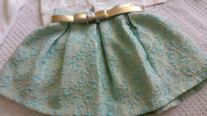В комплект входит кардиган, брошь и юбочка. Носили только юбочку.