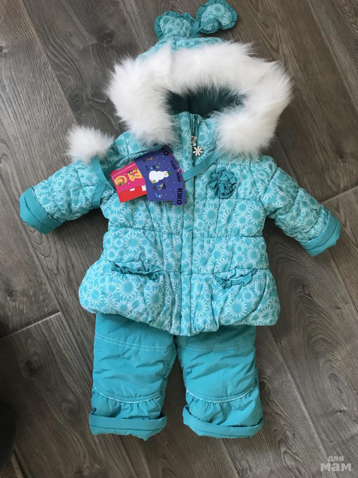 Продам новый костюм на зиму фирмы kiko. Комбензон и куртка. Мех на капюшоне натуральный, отстегивается. На комбезе внизу и у куртки в рукавах защита от ветра. Качество шикарное, все сделано с умом и для удобства Мамы и малыша. Очень тёплый, малышка в коляске сидеть не замёрзнет.