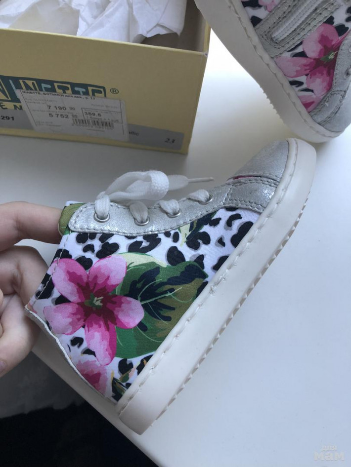 Отличные ботиночки, с молнией и супинатором. Очень эффектный принт. Мягкая примягкая кожа.