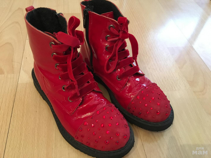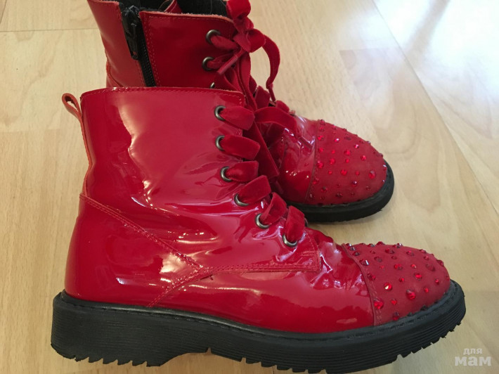 На левом ботинке есть микротрещинка, при носке ее совсем не видно.Все стразы на месте.