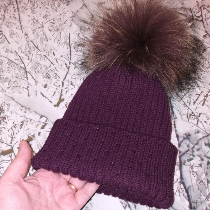 Тепленькая шапочка-резинка с отворотом в цвете марсала.
