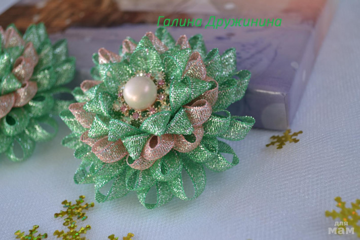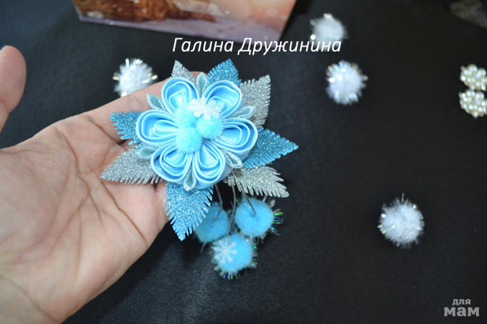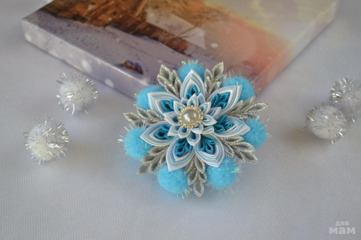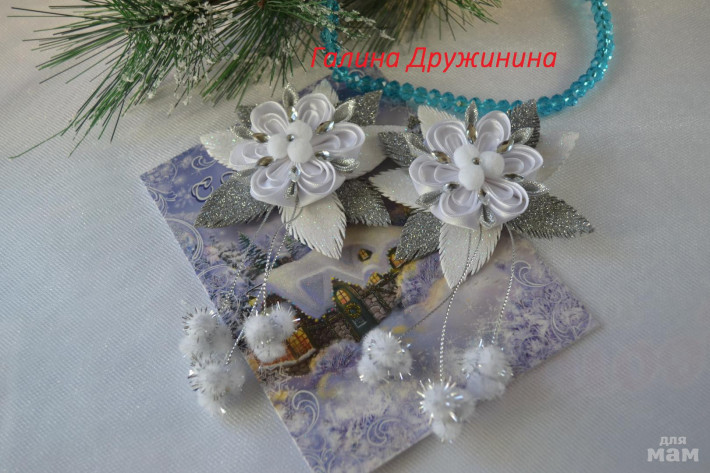 Снежинки-цветочки. 7.5 см. вместе с нижними лепесточками. Материал: репс, органза.