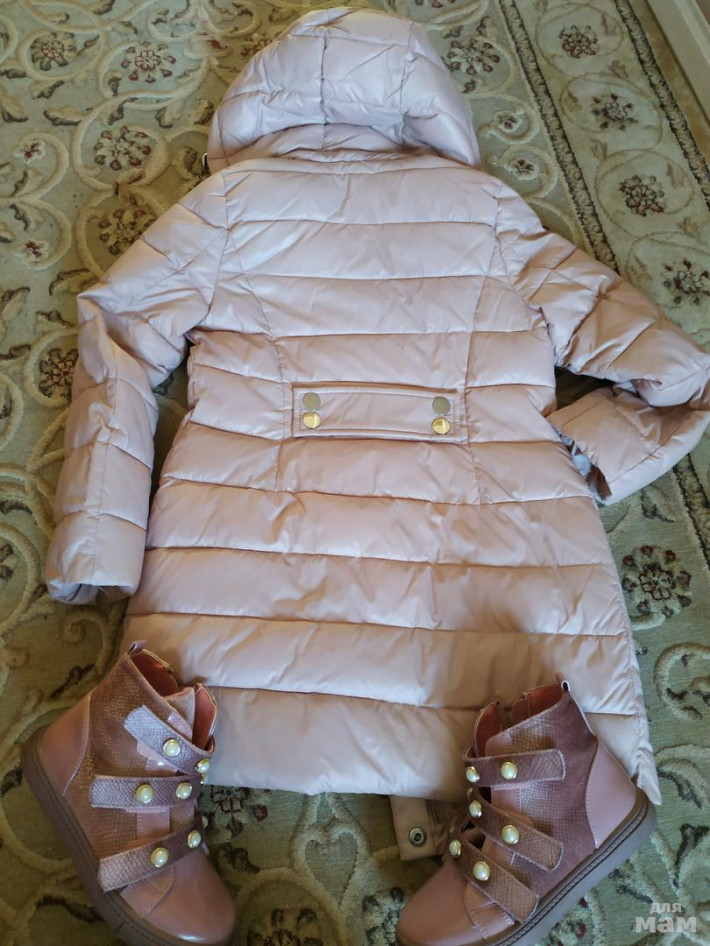 Пальто маркировка 116-122, носить можно до 128, комплект вязаный с ниточкой золотого люрекса, ботиночки утеплены размер 31. Все в идеале, ботинки без единого царапка. Продажа комплектом. цена2500 за комплект