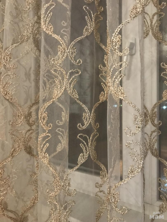 Размер 5 метров на высоту 2,70. С люрексом золото.