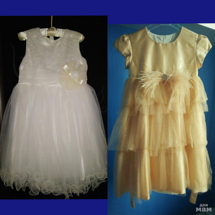 На рост 116.Пышные юбки. Оба одеты на утренники ,по одному разу.В идеале,хоть бирку вешай.Цена за два!Одно за 600!