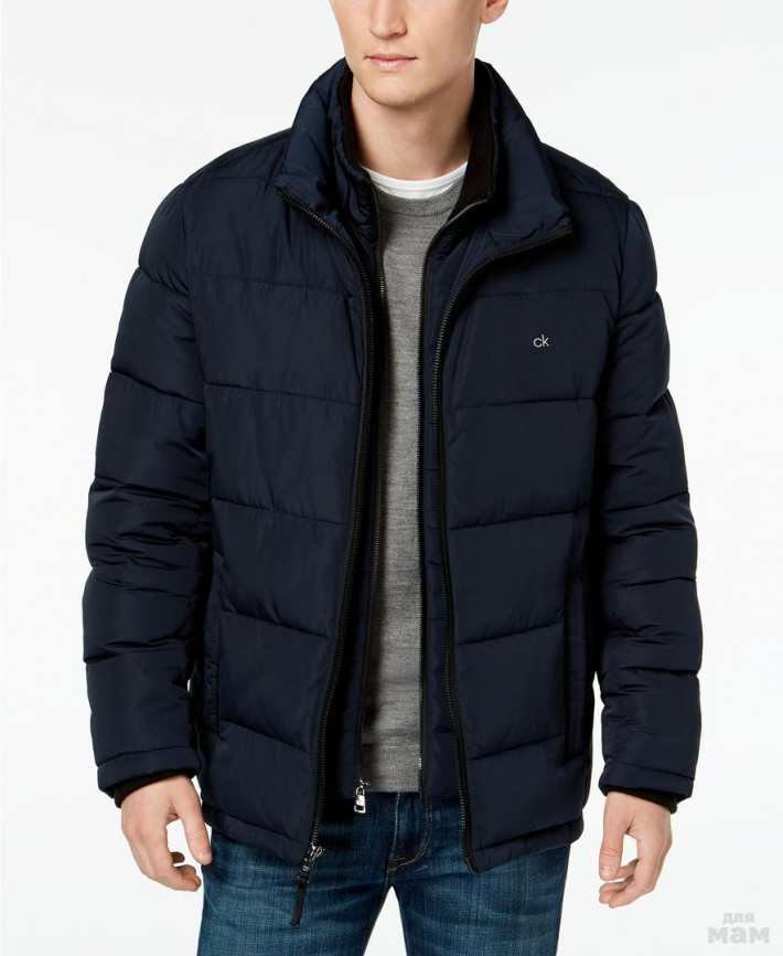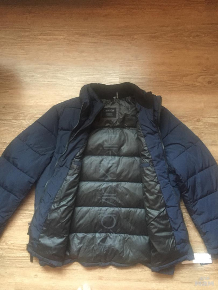 Ткань плотная, качество пошива отличное. Цвет темно-синий, как на картинке с сайта. Изнутри сделан красиво логотип. Двойная молния с добротной фурнитурой. Вешалка пришита сзади с логотипом CK. Рукава и ворот отделаны х/б резинкой, приятной к телу. Наполнение не пух, можно стирать в машинке. Как пуховик на каждый день — просто отлично.
