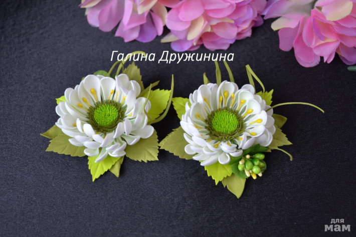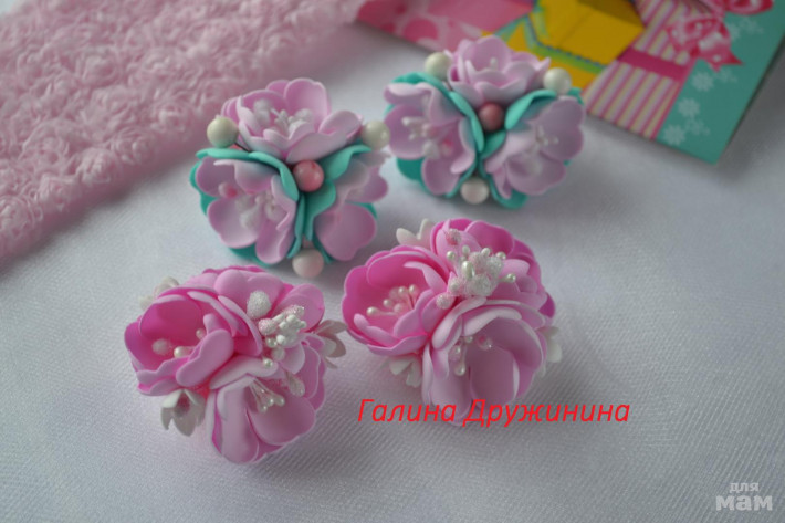 2)Цветочные букетики из фоамирана в наличии и на заказ 250 р./ пара размер 5,5 см. На первые хвостики отлично подойдут. Очень легкие. Изготавливаю из качественного фоамиран.