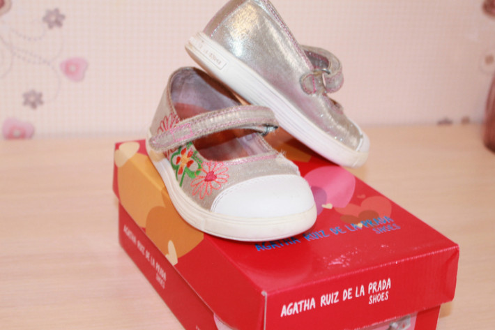 1. Туфли Аgatha ruiz de la prada. Носили на сменку в саду. Повреждена блестящая ткань на одной туфельке. Цена 500 руб.