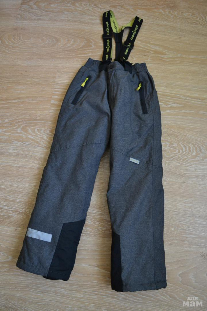 Отличные теплые брюки, утеплителя 150 грамм, в районе попы дополнительно утеплены подкладкой из микрофлиса(или что-то в этом роде). р. 116, сыну на рост 118см. еще как раз, но без запаса совсем, начинать носить можно при росте 112см.( а может и от 110см.). Лямки очень выручают, особенно для худеньких деток. Вообще брючки очень качественно сделаны, светоотражатели, по низу доп. защита от снега, утяжки, фурнитура хорошая, лямки съемные на липучках. Состояние как у новых, так как одевали за всю зиму раза 3, покупались на смену и на случай, если в более тонких рейма будет мерзнуть ребенок. Цена 1000р.