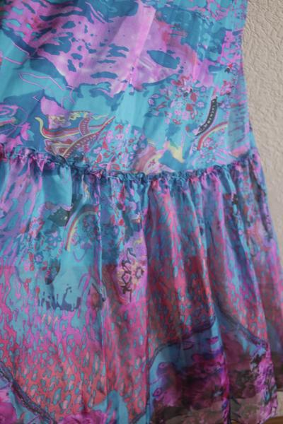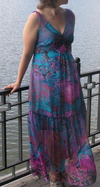 Р. 44 Рост 164см 100% шёлк Яркое невесомое шелковое платье трапециевидного силуэта, на подкладке.