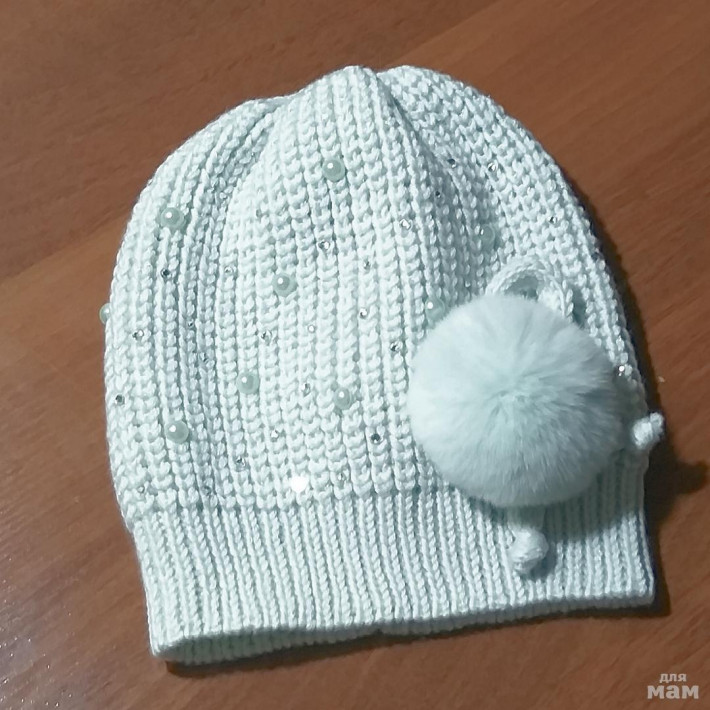 Пухленькая шапочка цвета нежной мяты на начало весны/конец осени.