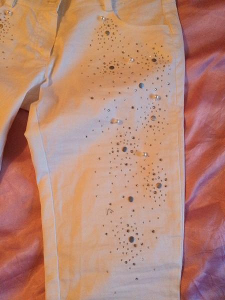 Красивые тоненькие белые брючки-джинсы Италия украшены стразами , жемчужинами На лето идеальный вариант Цена 1000