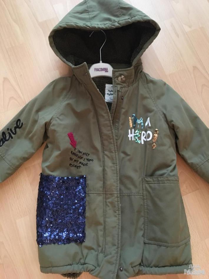 Утеплённая, очень эффектная, с пайетками и надписями. В отличном состоянии, без нюансов.