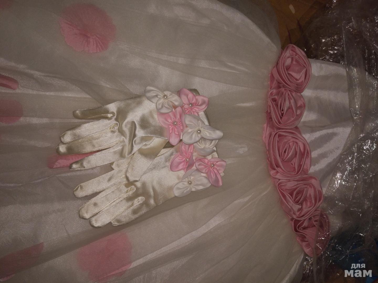 Perlitta, новое, размер 116-122, к нему есть перчатки, модель удлиненная. Длина 90, подмышки 32,5 от плеча до розочек 20 см 3500 перчатки один раз одевали к другому платью могу отдать в подарок