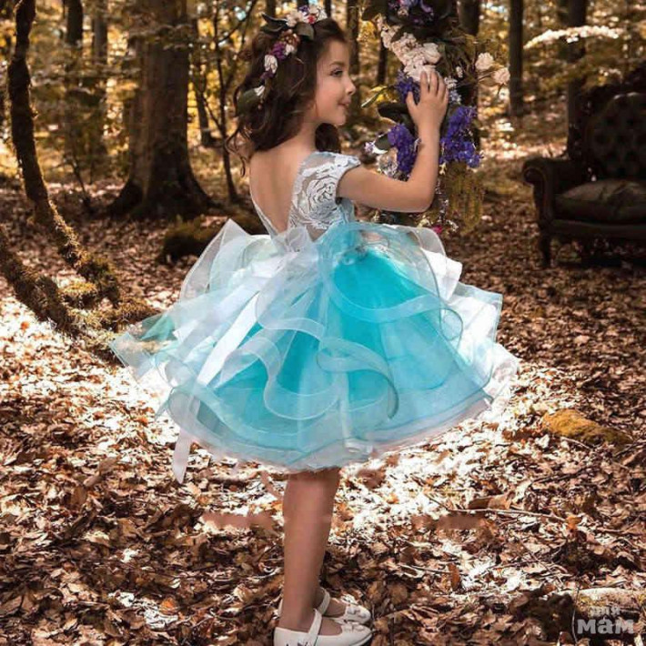 Продам платье для девочки trinity bride (коллекция "Волшебный лес"). Платье одето на 25 минут на мероприятие в детском саду. Состояние абсолютно нового. Изящное, игривое, короткое платье с гипюровым лифом и пышной юбочкой в нежно-голубом цвете. Верх расшит французским тонированным гипюром по белому фону, юбка имеет пышные валаны, которые держат форму. В комплекте подъюбник. Пояс расшит камнями вручную. Рост 110-116. Можно больше , либо меньше, просто платье будет чуть длинее или чуть короче. Также в комплекте за дополнительную плату есть дизайнерская корона (очень дорогая) и чокер ручной работы с кристаллом Сваровски (фото прилагается). Доп фото в личку.