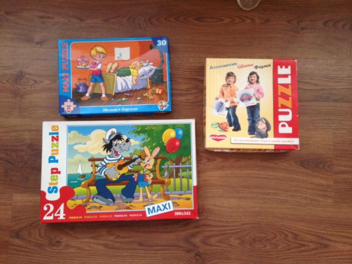 Смурфики набор большой как лего., пазлы на первом фото по 100р ,книга-пазл -300р, на втором фото пазлы времена года (их4шт) -250р,свинка пепа 200р,мишка -100 (есть такая же еще мышка) ,одежда-150р,собака -180р, репка и крас шап. по 100р -