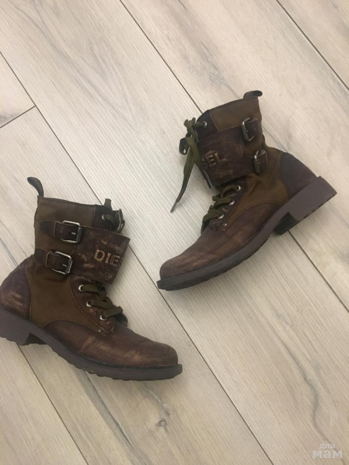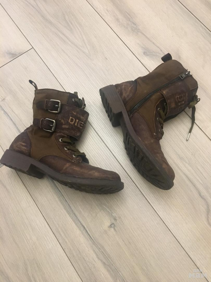 Стильные, гранжевые ботинки фирмы Diesel, в состоянии новых,эффект потертости это все от производителя)) осенью успели поносить не более недели, сейчас уже малы... маркировка 36,5, стелька не вынимается