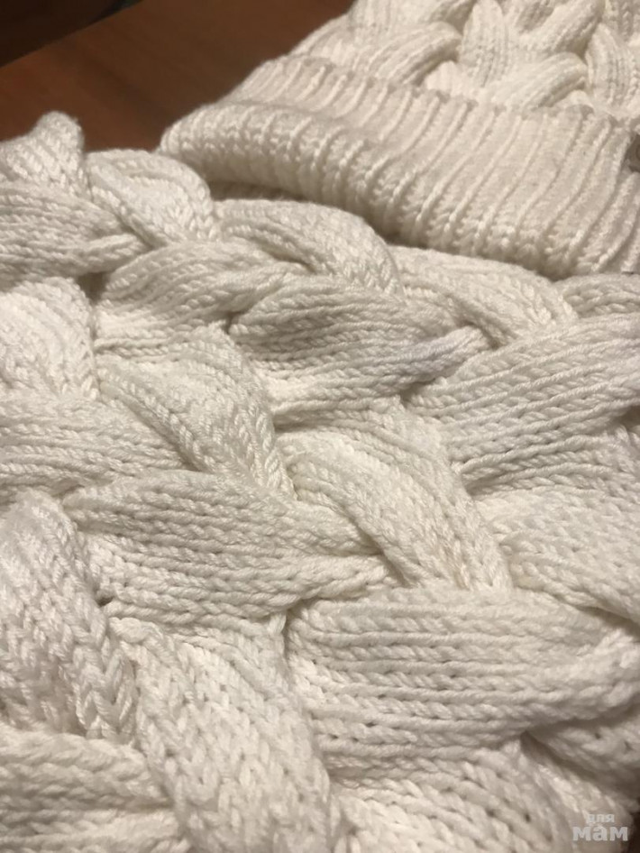Плотная 100% шерсть, не колется, ручная вязка. Состояние отличное