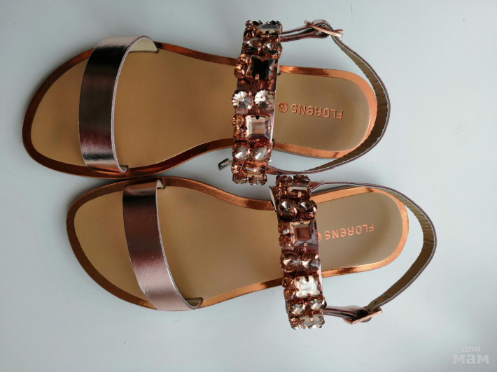 Новые, переросли. Марка Florens р.33 стелька 21 см. Цвет как на фото - бронза. Очень красивые! Камни горят!