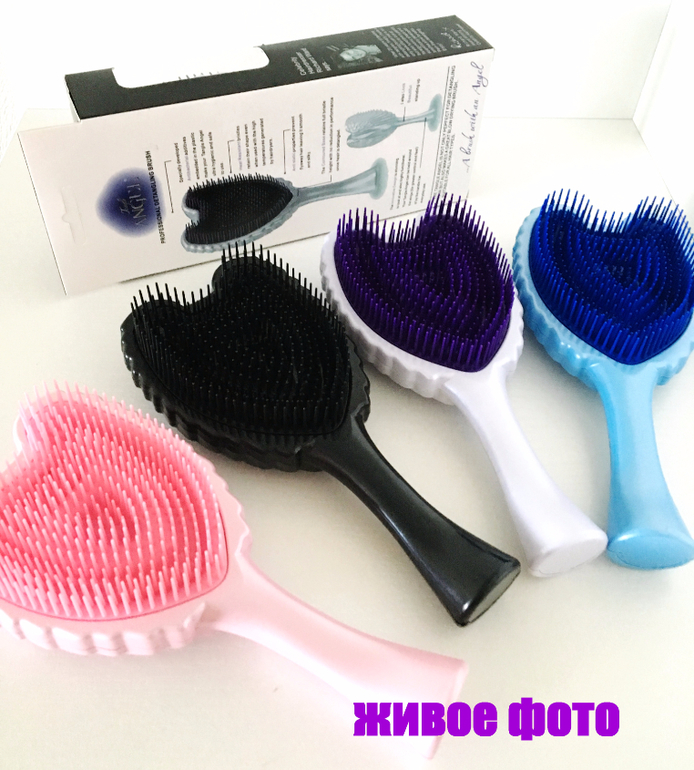 -- её форма в виде ангела сделана не просто для красоты - выступающие в верхней части "крылья" захватывают сначала тонкие пряди самых запутанных волос и основная часть расчески идет уже гораздо легче, вот точно "как по маслу", без остановок по всей длине