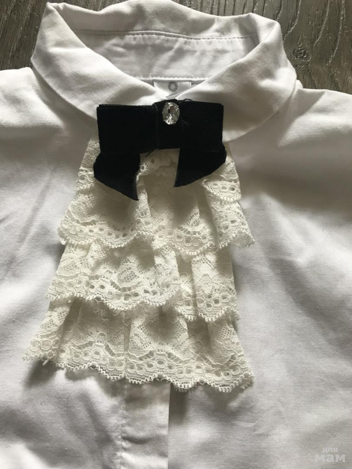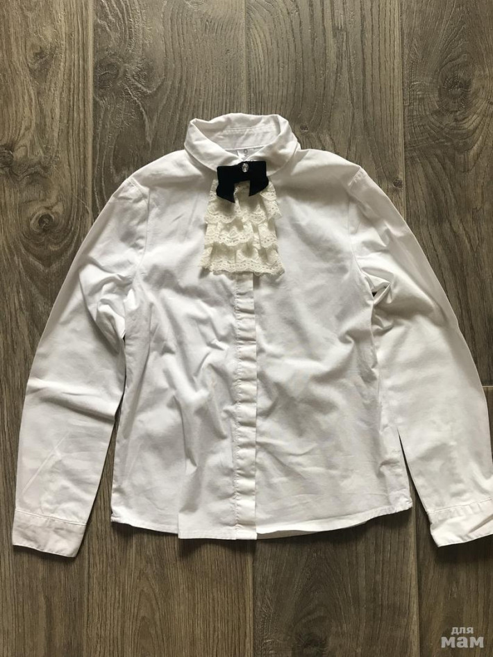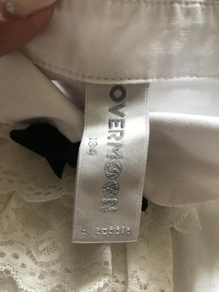 1. Блузка Overmoon от AcoolaKids, цвет белый, размер 134. Красивое жабо на пуговках, можно не пристёгивать. Цена 1000 руб.
