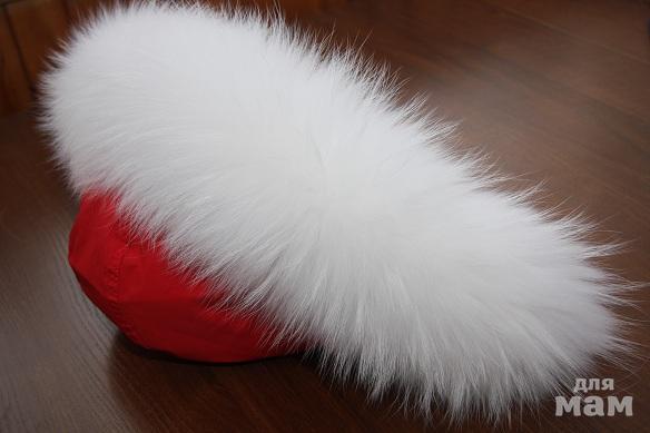 Опушка идёт на ткани, а ней дырочки для пуговиц, надо только пришить пуговки к краю капюшона и пристегнуть опушку.
