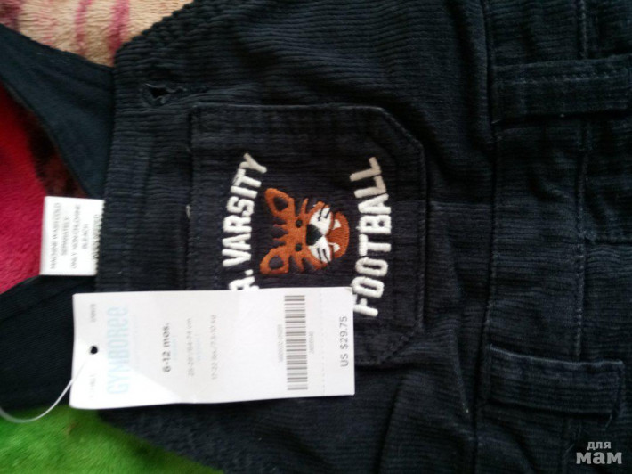 Вельветовый полукомбез фирмы Gymborеe, новый, размер 6-12 мес (64-74 см), цвет черный. Цена 1000