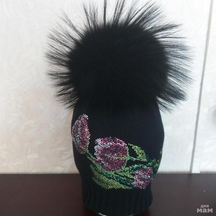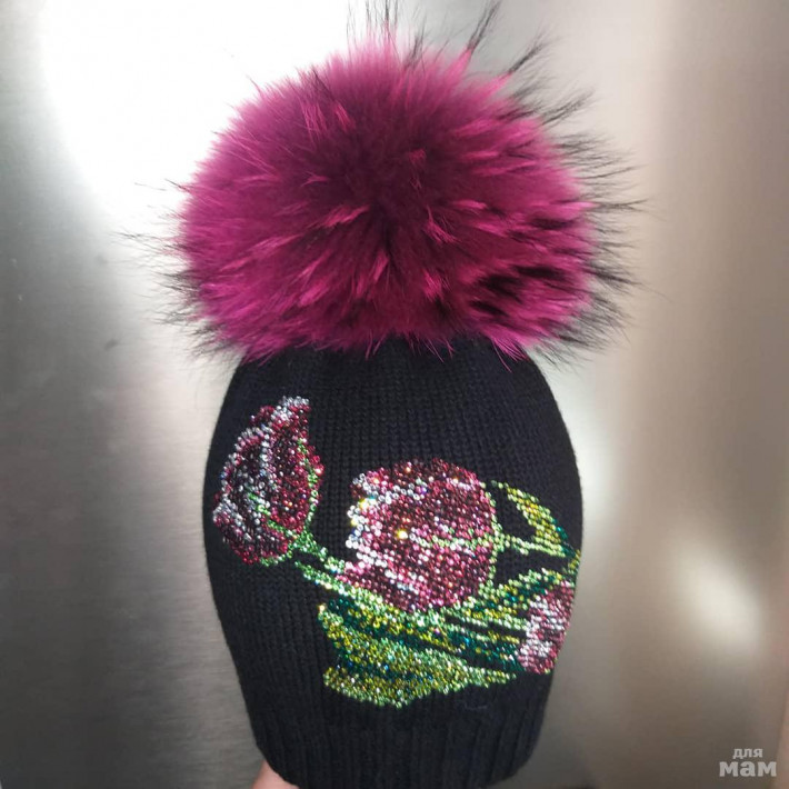 Шикарный помпон в цвете фуксия 23 см. Возможна замена на черный такого же размера