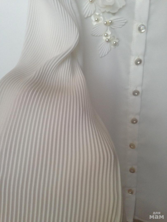 Невероятно красивая и нарядная блузочка фирмы "Маленькая леди". Цвет молочно белый, очень нежная). Абсолютно новая! Нам не подошла по цвету( на рост 128-134 см.