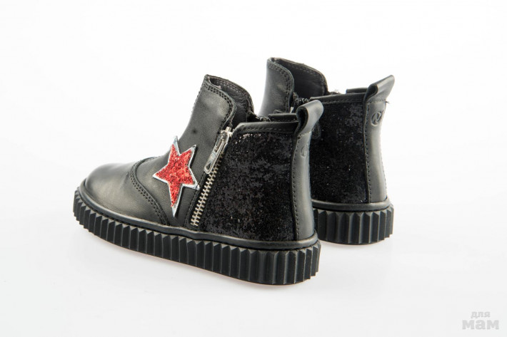 Ботинки NATURINO, сделаны из черной кожи +глиттер, внутри -кожа