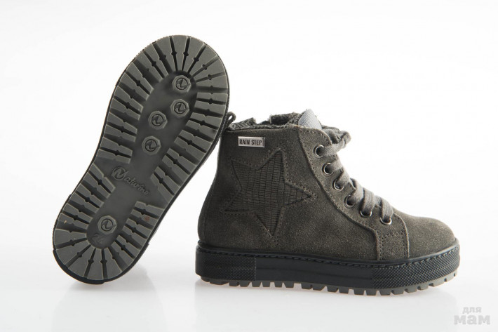 Ботинки NATURINO, сделаны из серебристой замши с лазерным напылением и черно серебристой ткани, внутри -флис, супинатор, мембрана