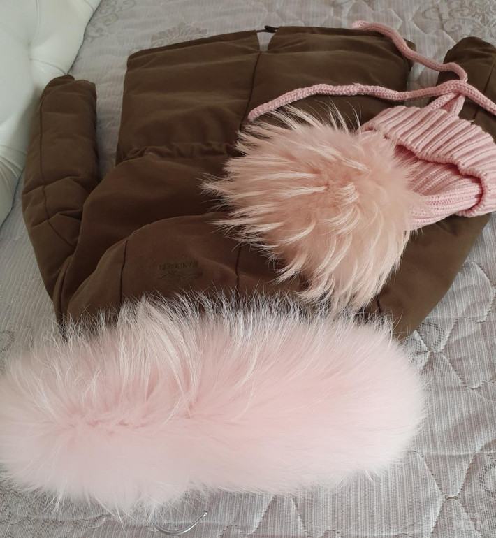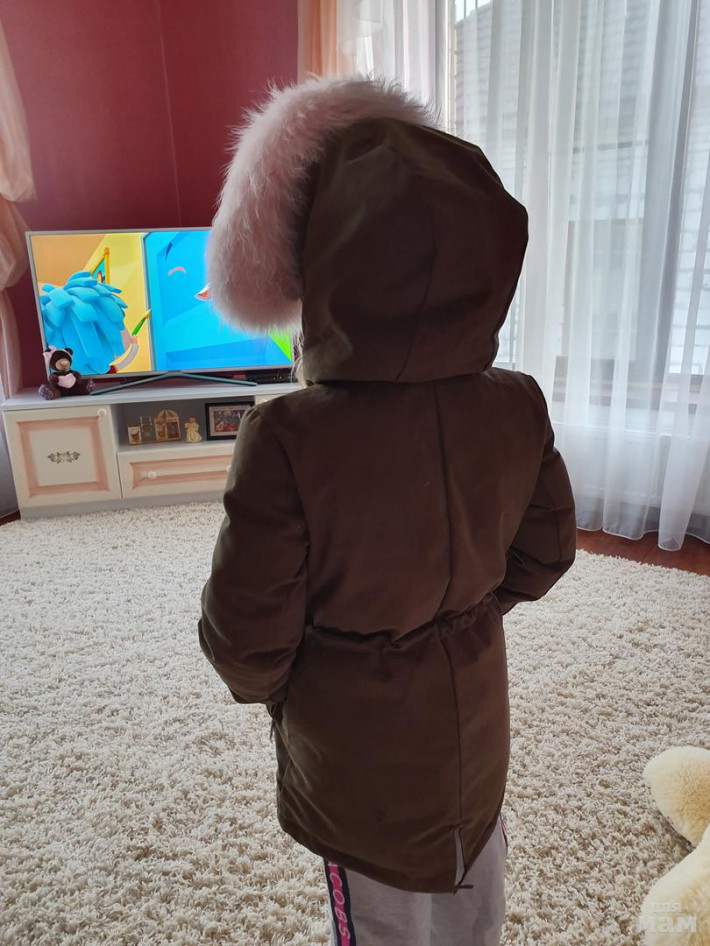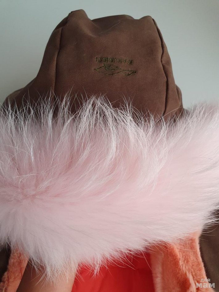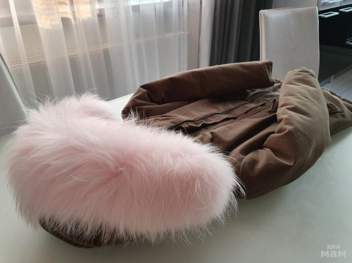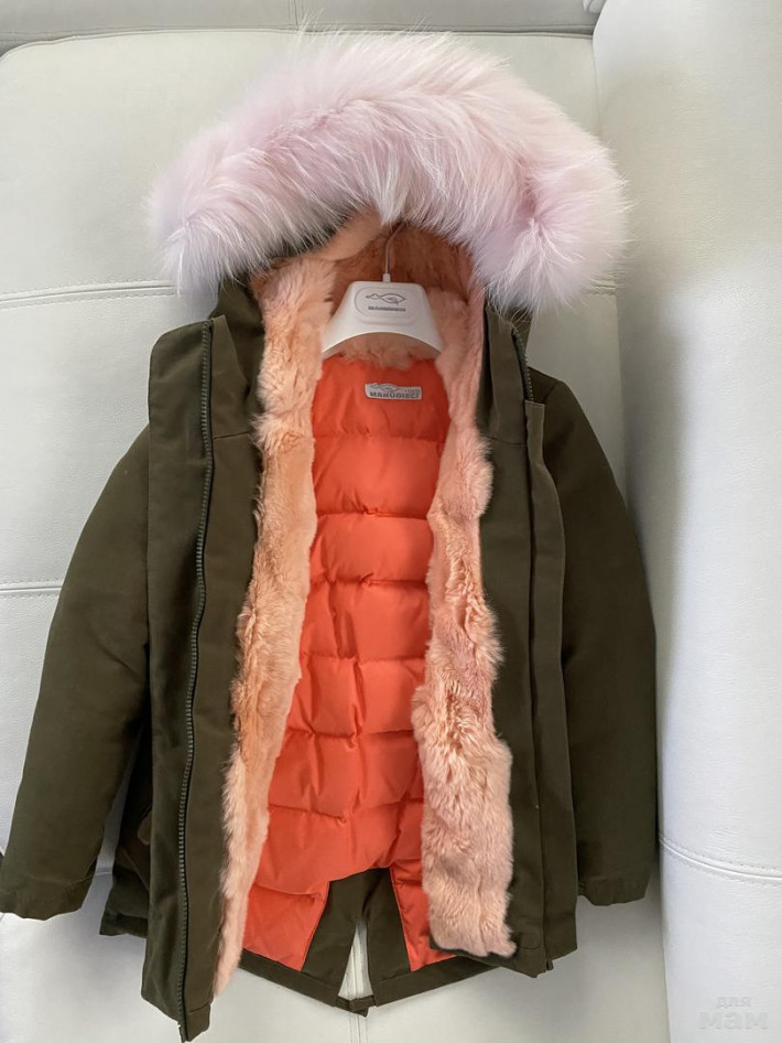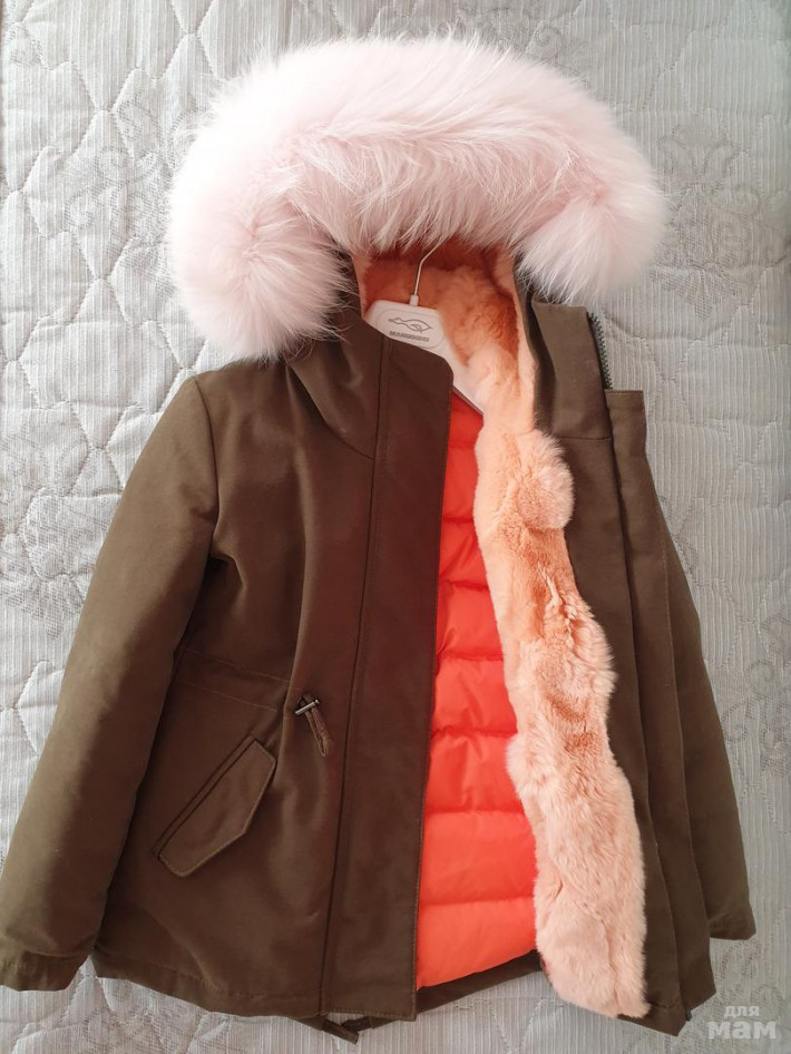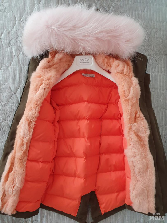 Парка нереальная! на пуху. в рукавах тоже пух.Внешний материал -хлопок . Опушка огромная и густая. в капюшоне и по бокам мех кролика, при застегивании он получается согревает по груди . Никакой свитерок не нужен. Легкая и оочень теплая. Одевали 3 раза в самые морозы от - 15 до -25 на одну водолазочку . Состояние идеальное . в х\ч не была , но есть нюанс. Чуть ниже попы имеется потертость ( от влажной салфетки. В химчистках делают тонировку , в нашем городе такой услуги нет(