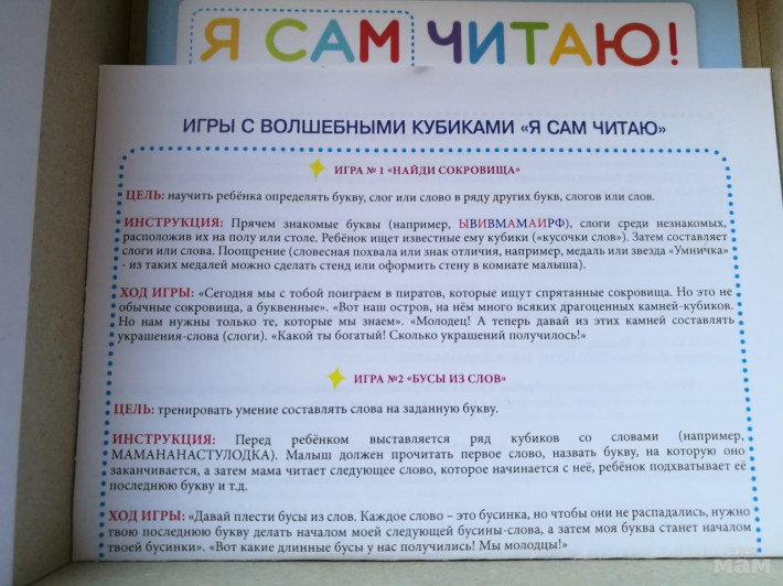 Кубики деревянные, буковые, грани и углы обработаны, не острые. К кубикам прилагается методичка, варианты игр и карточки для выкладывания слов. Все упаковано в прочную коробочку